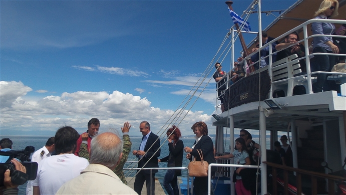 Ο Γιώργος Τσαμασλής, σαν «καλός οικοδεσπότης», δε χάλασε το χατίρι κανενός, κι έτσι, κάτοικοι της περιοχής, δημοσιογράφοι και υποψήφιοι δημοτικοί σύμβουλοι, επιβιβάστηκαν στον «ΚΩΣΤΑΝΤΗ», ο οποίος έκανε την παρθενική του βόλτα στα νερά του Θερμαϊκού, με προορισμό το σύμβολο της Θεσσαλονίκης, το Λευκό Πύργο!