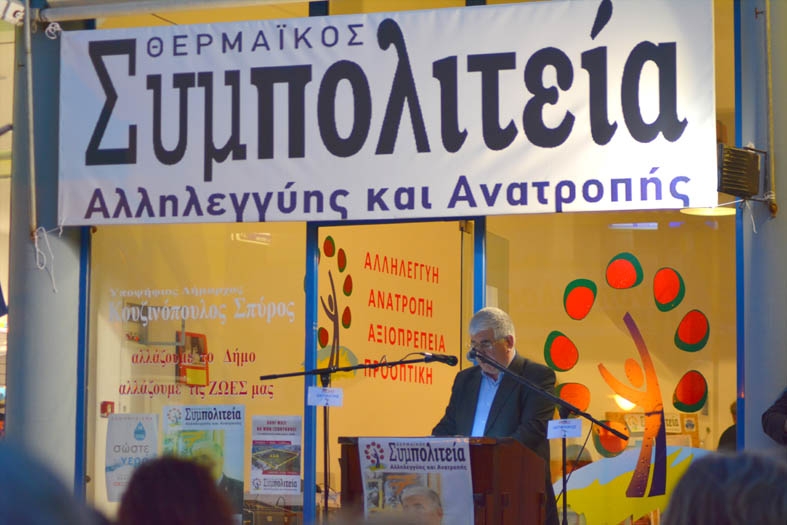 Συνεχίζοντας ο Σπ.Κουζινόπουλος ότι το πρόγραμμα της «Συμπολιτείας» έχει σαν συστατικό στοιχείο την κοινωνική πολιτική για τη διατήρηση της κοινωνικής συνοχής και παρατήρησε: «Ένας δήμος, με το μέγεθος του δήμου Θερμαϊκού, δεν γίνεται να λειτουργεί με 2 μονάδες βοήθεια στο σπίτι. Δεν γίνεται να μην υπάρχει δίκτυο βοήθειας των ανέργων. Δεν μπορούμε να βλέπουμε πεινασμένα παιδιά στα σχολεία. Δεν αποδεχόμαστε την υποβάθμιση των ιατρείων της περιοχής και η δημοτική αρχή να μην παρεμβαίνει».