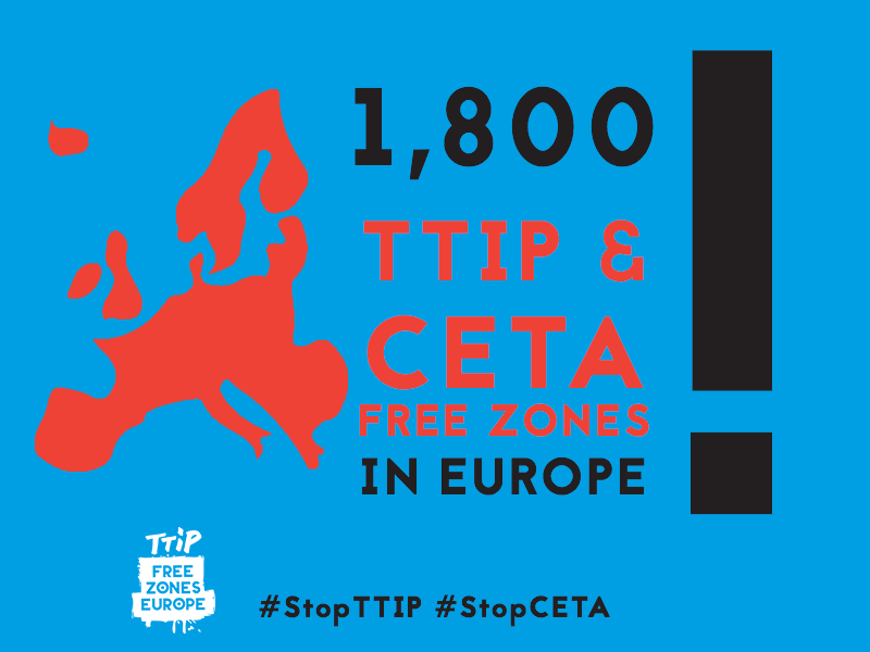 Ένα τεράστιο κύμα ανακήρυξης δήμων και περιφερειών σε «Ζώνες Ελεύθερες από την TTIP» έχει ξεκινήσει και απλώνεται ταχύτατα στην Ευρώπη. Δημοτικά Συμβούλια μεγάλων δήμων όπως του Άμστερνταμ στην Ολλανδία και του Μπίρμινχαμ στην Αγγλία, πόλεις και περιφέρειες στην Αυστρία, στη Γερμανία, στην Ισπανία, στην Ιρλανδία, στο Βέλγιο, κ.ά. κηρύσσουν τις περιοχές τους και τις πόλεις TTIP FREE ZONES. Ιδιαίτερα στη Γερμανία, 10.000 πόλεις και χωριά έχουν κηρυχτεί «Ελεύθερες Ζώνες».