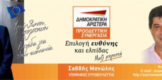 ΣΑΒΒΗΣ ΜΑΝΩΛΗΣ ΥΠΟΨΗΦΙΟΣ ΕΥΡΩΒΟΥΛΕΥΤΗΣ ΜΕ ΤΗ ΔΗΜΟΚΡΑΤΙΚΗ ΑΡΙΣΤΕΡΑ-ΠΡΟΟΔΕΥΤΙΚΗ ΣΥΝΕΡΓΑΣΙΑ